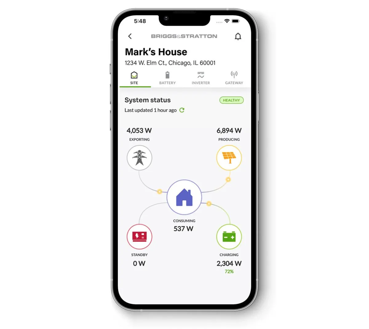 EnergyTrak™ provides advanced system monitoring through a streamlined mobile app that delivers real-time status and updates for Briggs & Stratton communications-enabled batteries. EnergyTrak gives you peace of mind, helping to ensure your batteries are healthy and operating as normal. Stay informed with detailed operating data, including remaining battery life/discharge time and fault and warning notifications.